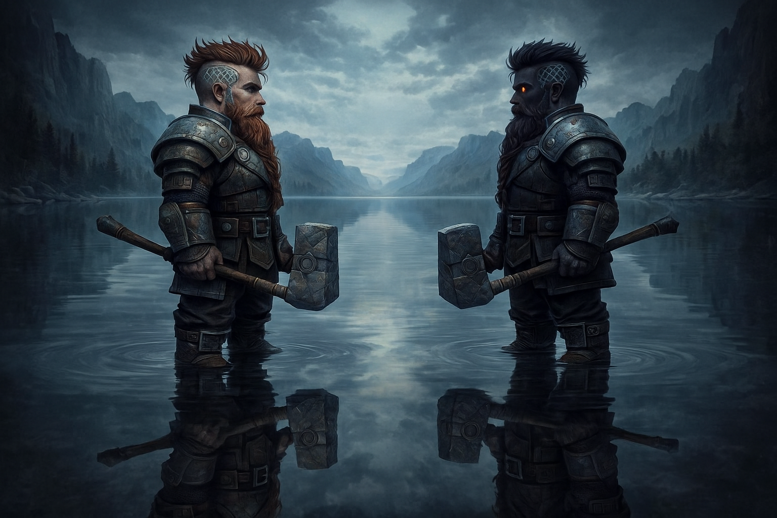 Balthy, le Dev, le forgeron suprême des lignes de code, les yeux cernés comme deux parenthèses oubliées, le dévisageait. D’une main, il ajusta ses lunettes ; de l’autre, il tapota sur son micro pour vérifier qu’il était bien allumé, comme si amplifier un nain biominiaturisé faisait partie d’un protocole habituel.